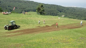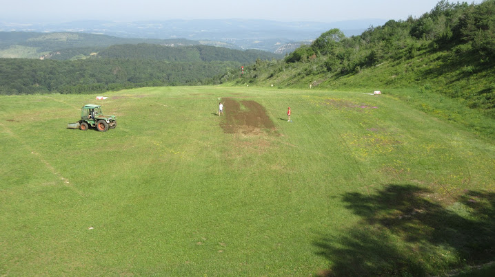de la terre pour boucher les trous et réensemencer. Dans la
