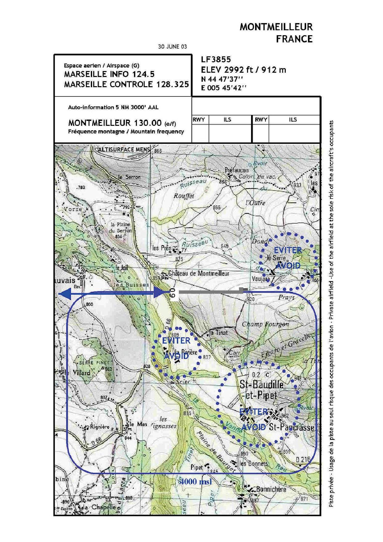 Au décollage garder l’axe de piste sur 2 km.Radio 130.00